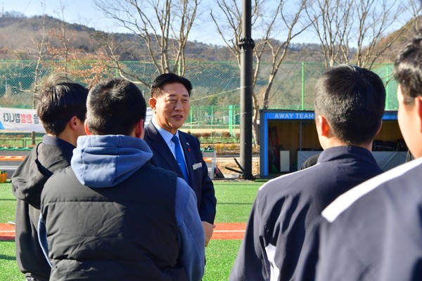 27일 훈련장을 방문해 선수단을 격려한 김한종 군수는 “훈련에 불편함이 없도록 지원을 아끼지 않겠다”며 “오늘 흘린 구슬땀이 좋은 성적으로 이어지기를 바란다”고 말했다.